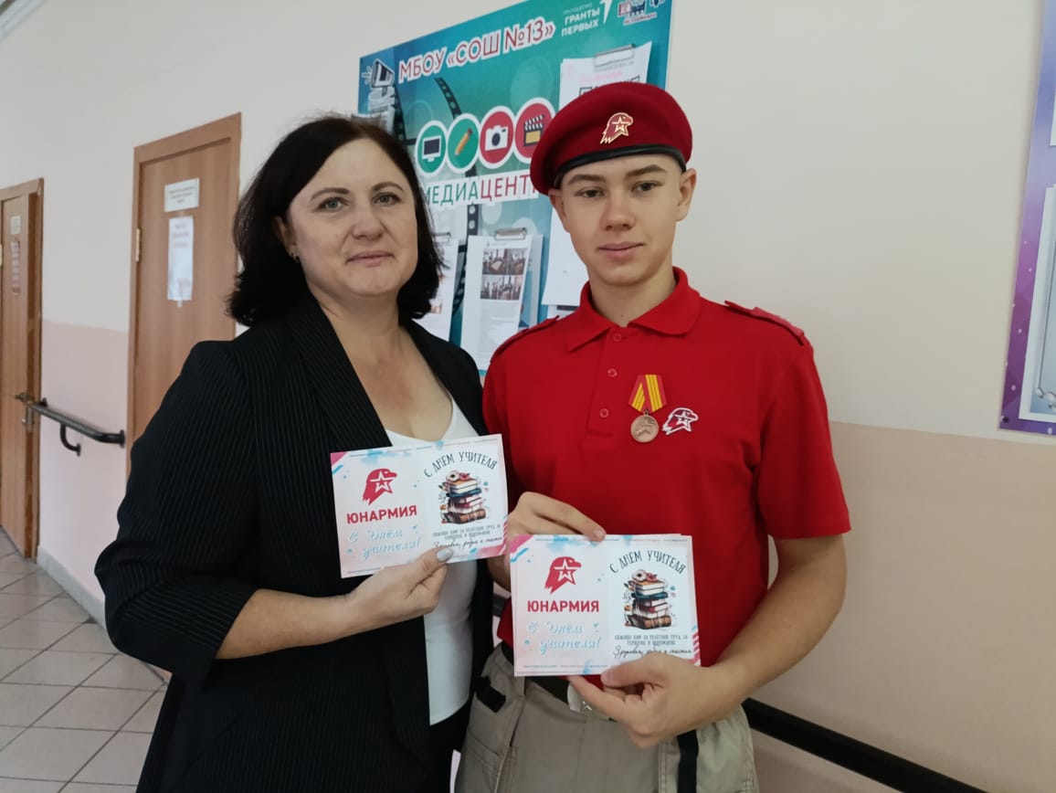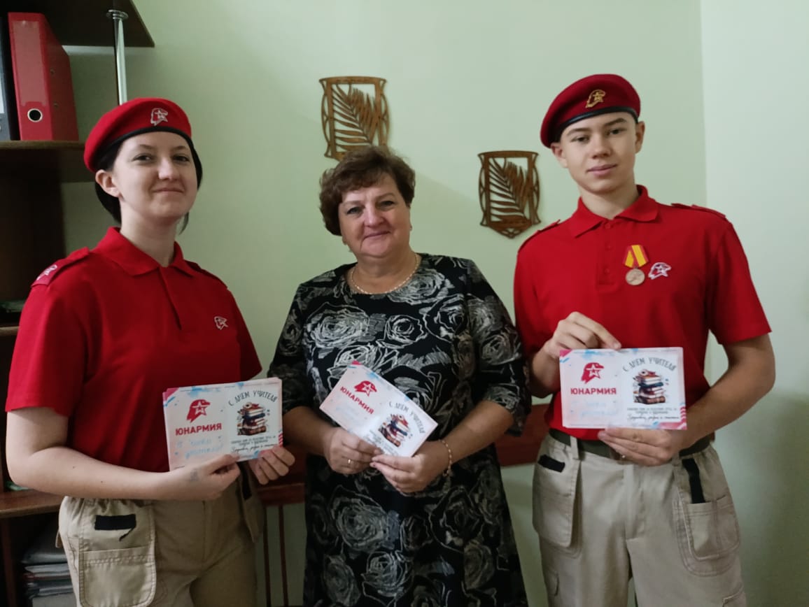 В преддверии профессионального праздника - Дня учителя - славгородские юнармейцы поздравили своих преподавателей, вручив им открытки с наилучшими пожеланиями.