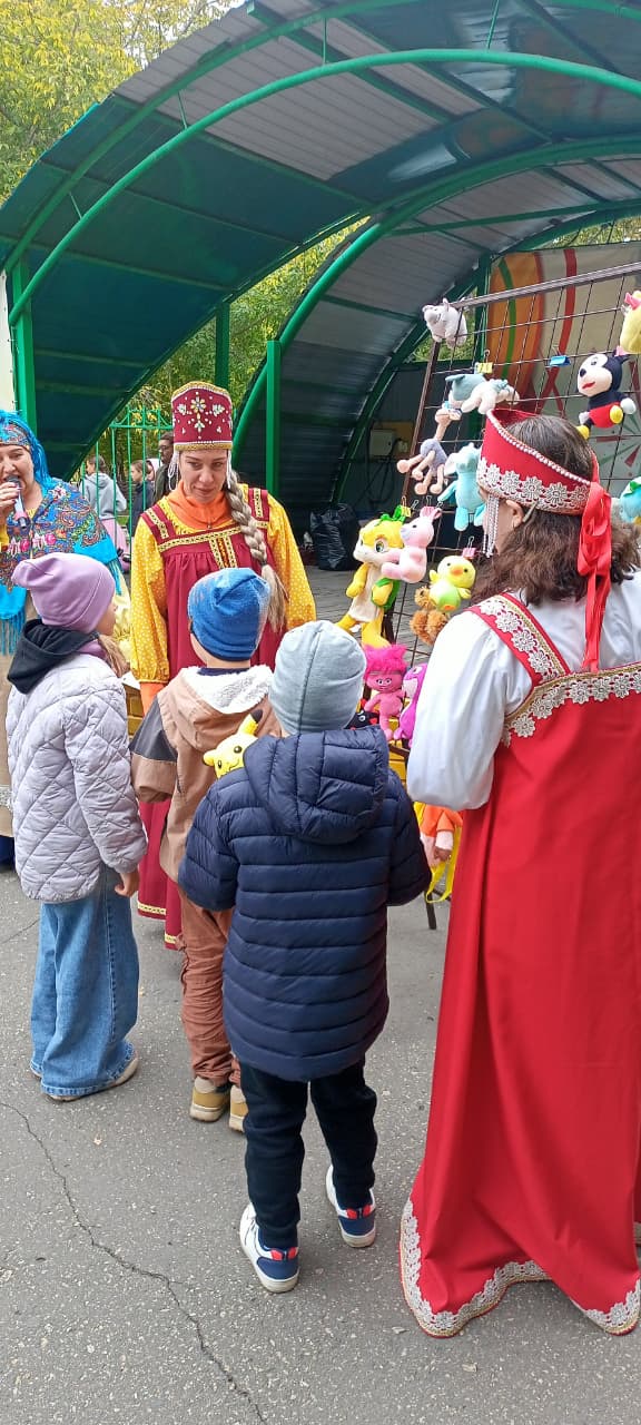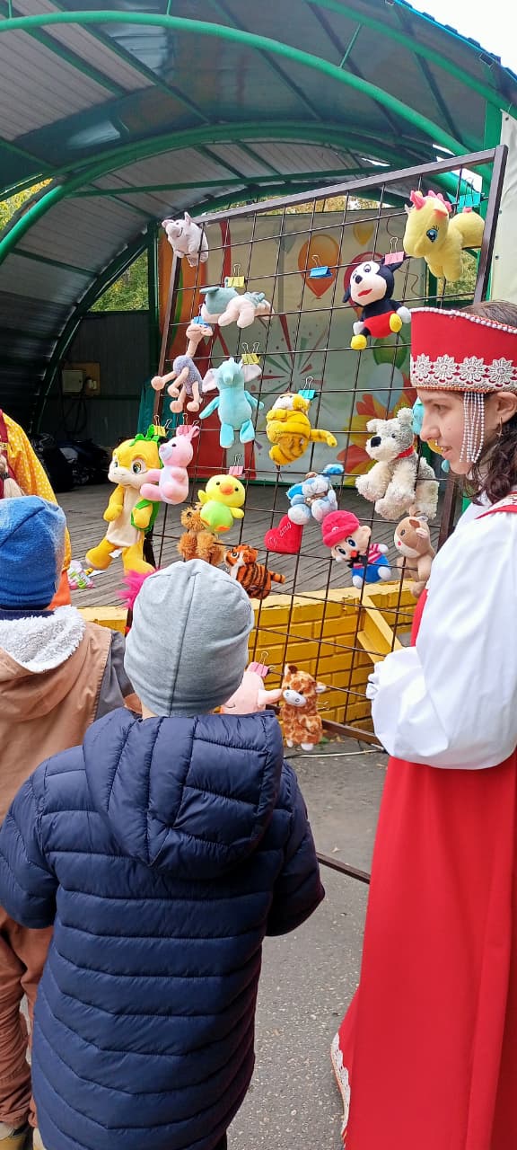 Несмотря на прохладную погоду гостей в парке было много. Дети активно участвовали в играх, с удовольствием принимали в дар игрушки от участников театрализованного представления, а после охотно делали селфи у фотозон.