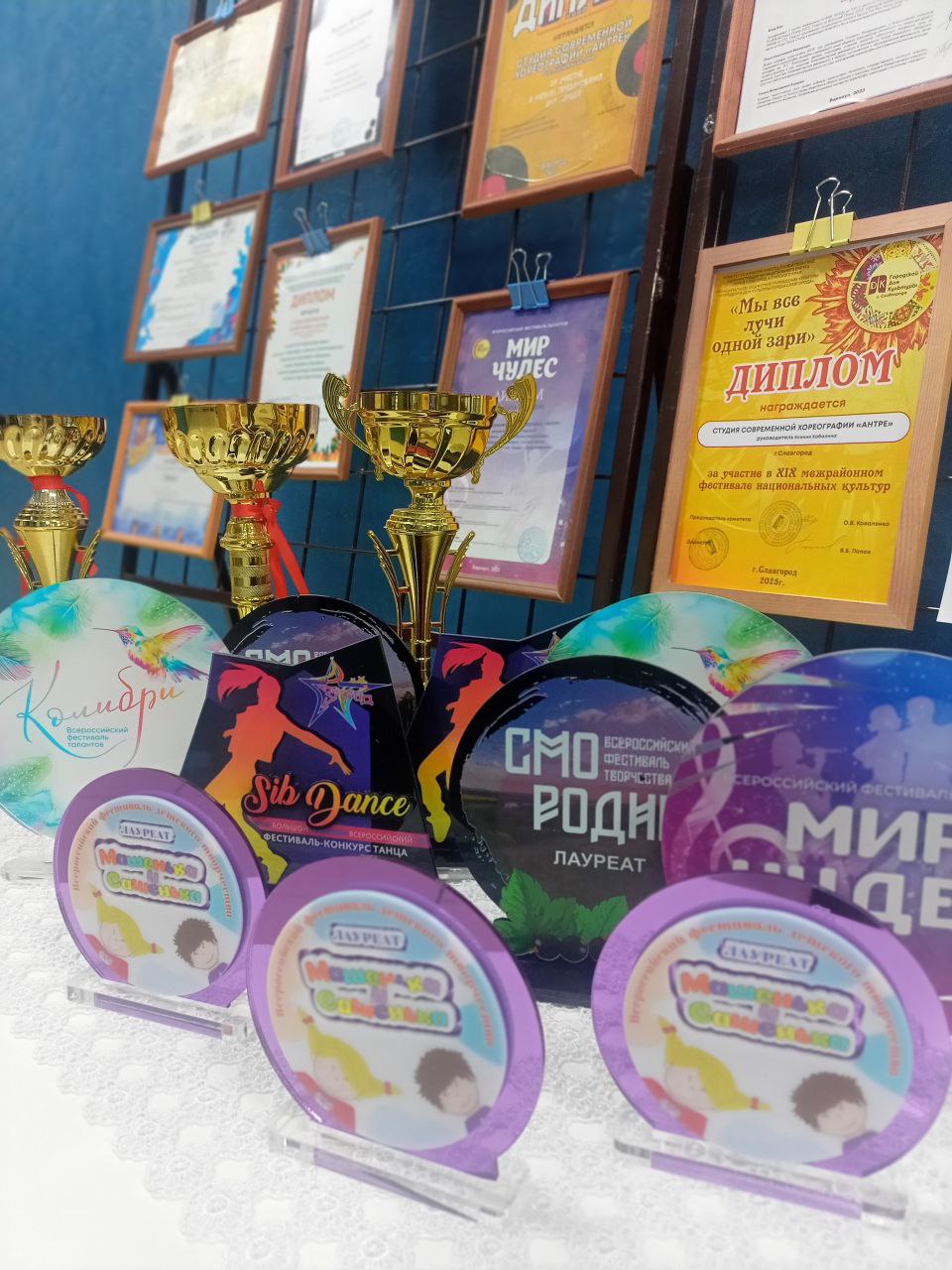 Заслуги коллектива и памятные фотографии с выступлений были представлены на выставке достижений, которая работала в день концерта в фойе ГДК.