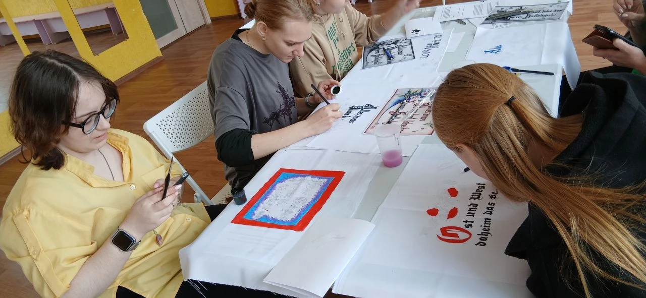 12 марта группа студентов педагогического колледжа и их педагоги приняли участие в мастер-классе по созданию «шпрухов» (Spruch) - настенных украшений традиционного немецкого дома, несущих в себе художественный и сакральный смысл. Способ изготовления был выбран самый быстрый и современный: холст с нанесенным ранее рисунком и надписью на немецком языке в готическом стиле. Расписывали акриловыми красками по ткани. В старину шпрухи изготавливали, используя метод резьбы по дереву, или вышивали на ткани, которую вставляли в раму со стеклом. В переводе с немецкого языка "Spruch" означает – изречение, сказание, притча, народная мудрость. В рамках мастер-класса его участники узнали историю возникновения украшения и о традиции дарить «шпрухи» на праздники, семейные торжества, свадьбы, передавать из поколения в поколение и по наследству. Мероприятие было организовано при поддержке «Международного союза немецкой культуры» в рамках Программы поддержки российских немцев.