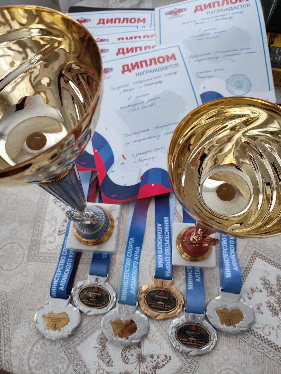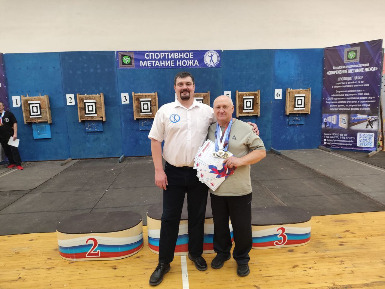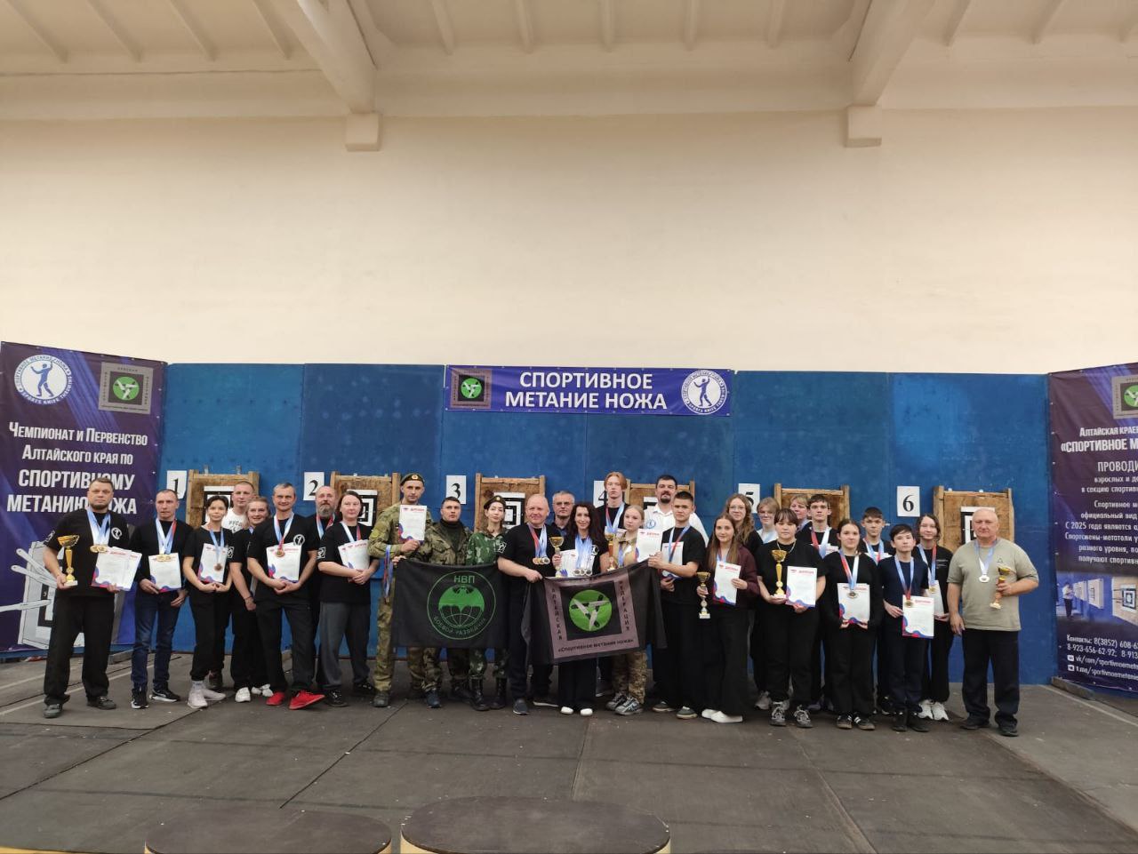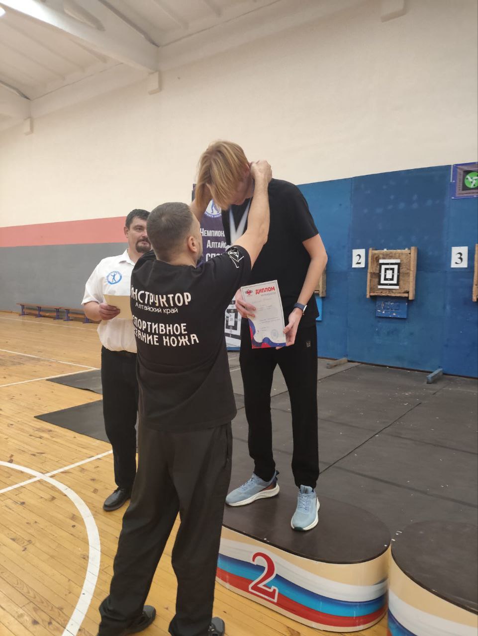 Спорт является одной из важных составляющих юнармейского движения. Занятия укрепляют здоровье, делают юнармейцев сильными, выносливыми и дают возможность участвовать в соревнованиях. А если это ещё и приносит победы, то вдвойне приятно как участникам, так и их наставникам. В течение недели юнармейцы Славгорода под руководством куратора Дома ЮНАРМИИ Владимира Мишукова приняли участие в двух видах соревнований. В краевых соревнованиях по кикбоксингу, элементы которого входят в курс общей физической подготовки юнармейцев, наши курсанты заняли третье, второе и шесть первых мест. Спустя три дня на Первенстве Алтайского края по спортивному метанию ножей команда городского отряда "Вихрь" заняла второе место в командном зачете, а также два первых, второе и третье места в личном зачете по возрастам. Кроме того команда кураторов Дома ЮНАРМИИ приняла участие в Чемпионате Алтайского края по спортивному метанию ножа, где заняла третье место в командном зачете, а Владимир Мишуков занял первое место в метании ножа с дистанции 9 метров. Поздравляем славгородских юнармейцев с заслуженными наградами!