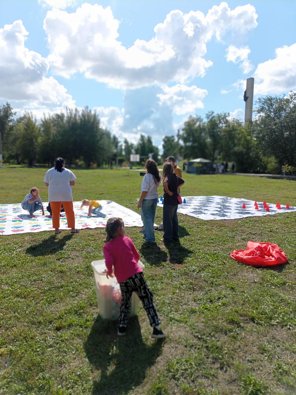 Игровая площадка включала в этом году такое разнообразие вариантов, что привлекла внимание не только детей. Люди всех возрастов с удовольствием пробовали свои силы в настольных и интерактивных играх, стреляли по мишеням из рогаток огромного размера, играли в морской бой и тренировали гибкость в твистере.