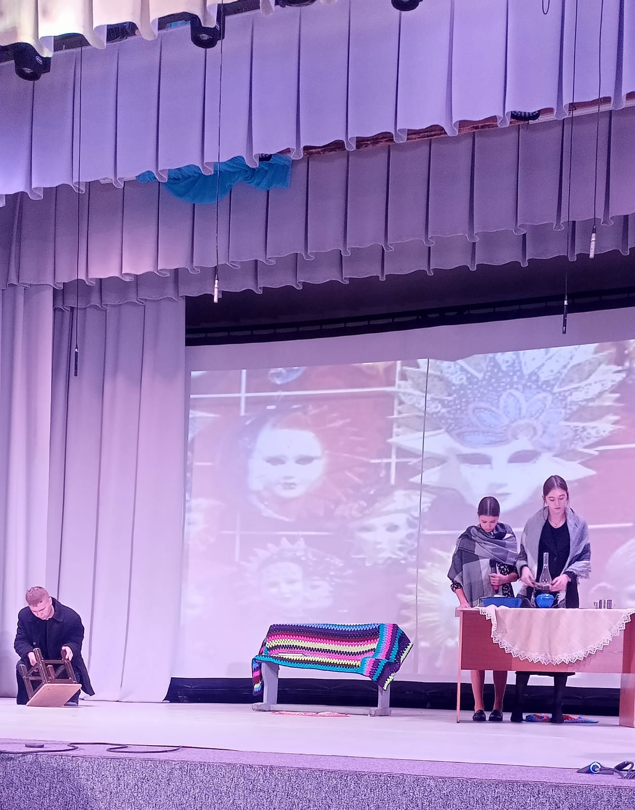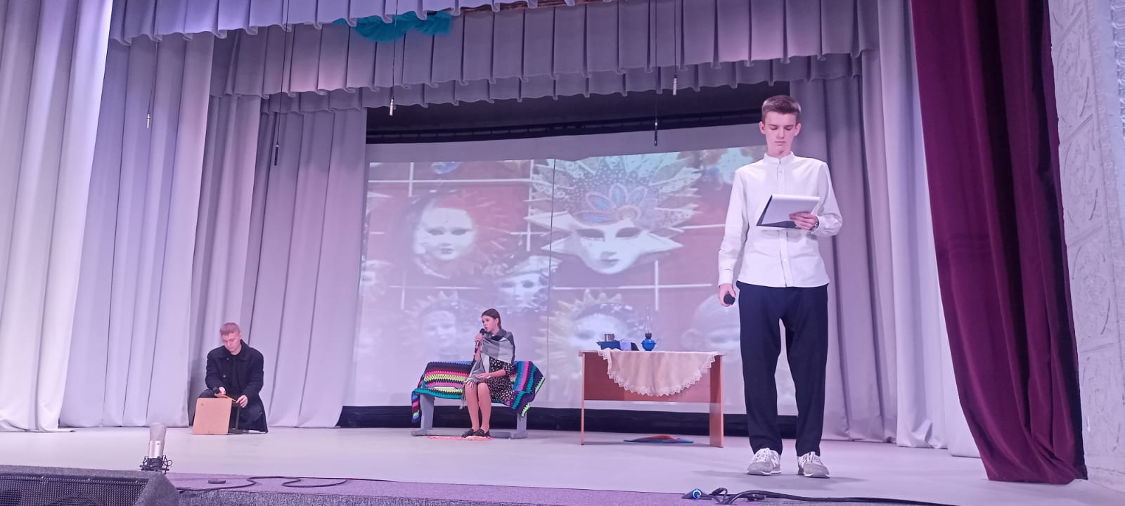 27 ноября на сцене Городского Дома культуры прошел V межрайонный фестиваль «Театральная маска». Он был приурочен к Году защитника Отечества и юбилейным датам выдающихся классиков жанра: Антона Чехова, Михаила Зощенко, Сергея Есенина и Александра Твардовского. Каждый год география «Театральной маски» расширяется, растет количество участников. В этом году приняло участие 10 театральных студий из г.Славгорода, с.Пригородное, с.Славгородское, п.Бурсоль и с.Панкрушиха. Юные театралы выступили с творческими постановками в номинациях: художественное слово, художественное чтение, малая театральная форма, оригинальный жанр. По окончанию программы всем коллективам были вручены Дипломы фестиваля, а руководителям – Благодарственные письма.