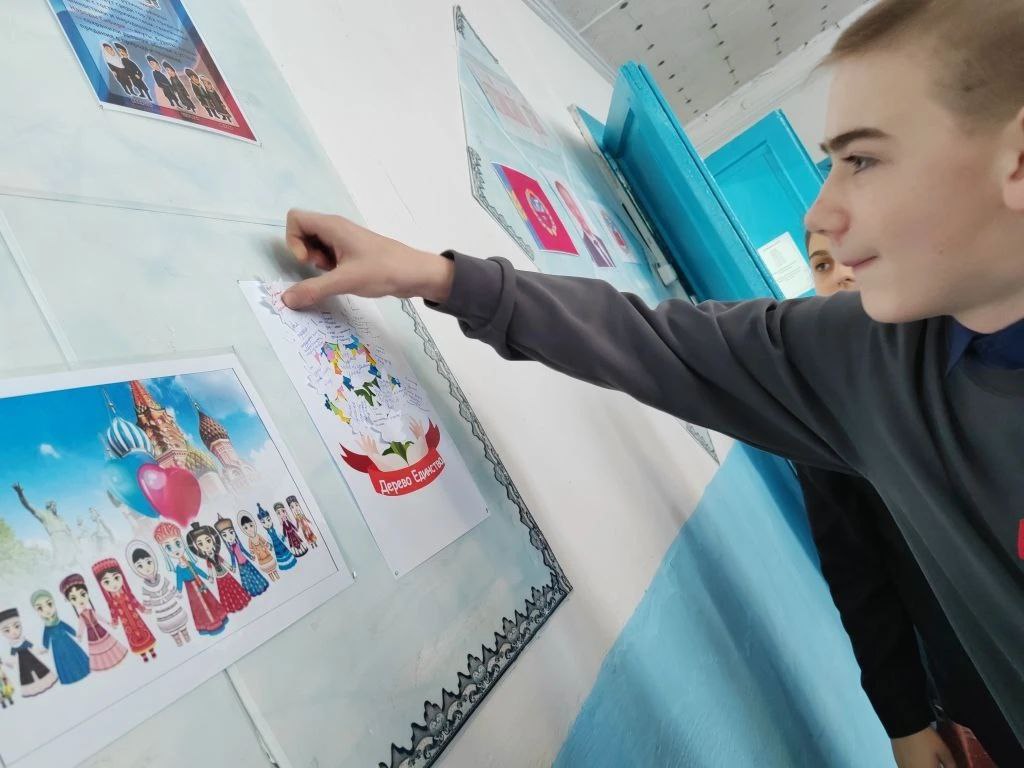 В ходе программы ученики отвечали на тематические вопросы и записывали пожелания на «Дереве Единства».